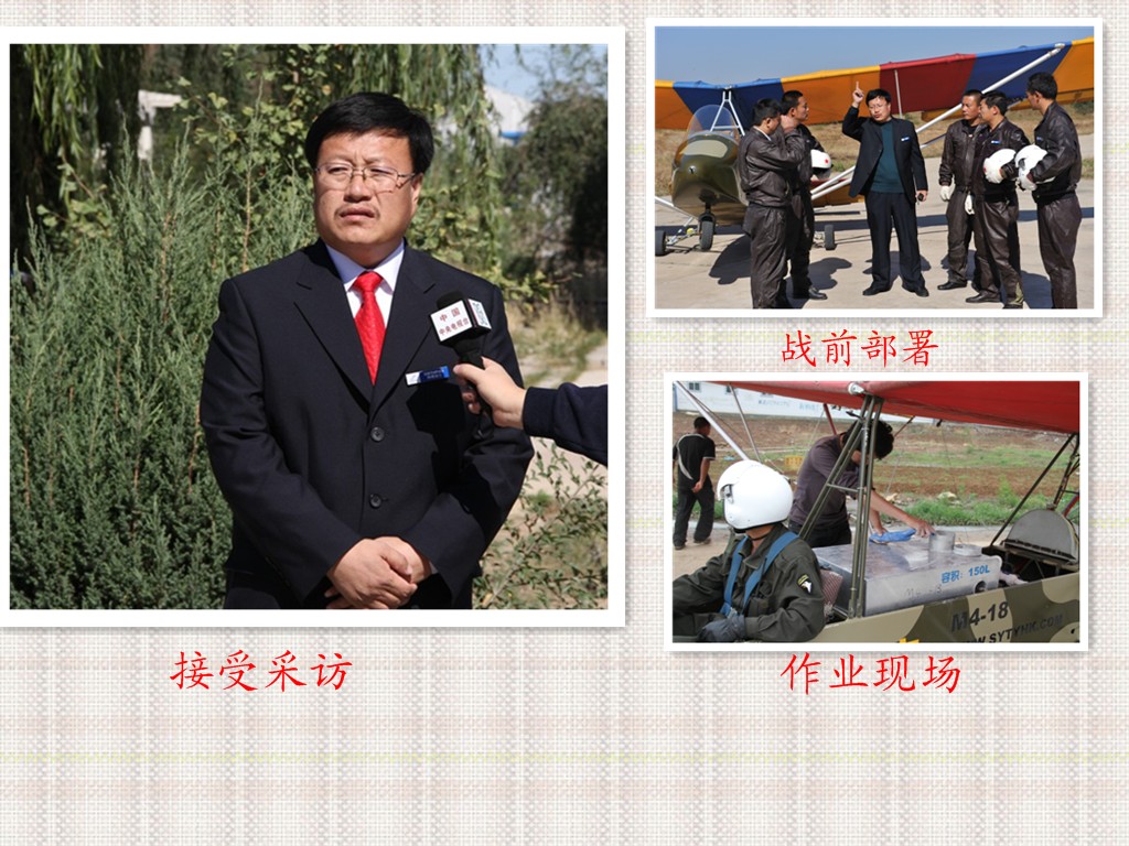 在祖國版圖的北方,茫茫的科爾沁沙地上活躍著一支以下崗職工創(chuàng)建的充滿傳奇色彩的隊伍--通遼市神鷹通用航空有限公司,他是全國第一家以超輕型飛機注冊的中國通用航空企業(yè),同時也是全國第一家集飛機播種、空中施肥、空中噴灑植物調(diào)節(jié)劑、空中除草、防治農(nóng)林牧業(yè)病蟲害、草原滅鼠、防治衛(wèi)生害蟲、航空護林、空中拍照、私用飛行駕駛執(zhí)照培訓(xùn)、航空運動訓(xùn)練飛行、航空運動表演飛行、個人娛樂飛行為主營業(yè)務(wù)的綜合性通用航空企業(yè)?,F(xiàn)有超輕型飛機30余架,號稱中國私人第一飛行機群,從業(yè)人員70余人的專業(yè)進行農(nóng)林牧業(yè)作業(yè)的社會福利型團隊,多年來在防治農(nóng)林牧業(yè)病蟲害工作中默默無聞的為改善祖國生態(tài)環(huán)境做著不懈的努力,截止201091日,在我國山東省、河北省、遼寧省、吉林省、內(nèi)蒙古自治區(qū)共進行飛機防治農(nóng)林牧業(yè)病蟲害和飛機播種2500萬畝,積極參與了“綠色奧運環(huán)保飛行”、國家項目“京津唐風沙源治理工程”、“遼寧省荒山治理工程”、“內(nèi)蒙古荒沙荒山治理工程”等多項國家“十一.五”期間重點工程項目,特別是2008年以后,在我國北方沿海地區(qū)美國白蛾泛濫,公司上下齊動員在蟲災(zāi)最嚴重的河北省、山東省連續(xù)三年作業(yè),為抑制美國白蛾在我國大面積泛濫做出不懈努力,得到當?shù)卣陀嘘P(guān)單位的一致好評,2009--2010年內(nèi)蒙古自治區(qū)西部蝗蟲泛濫,大片農(nóng)田、草原頃刻間被吞噬,神鷹航空公司義不容辭,積極參加到與自然災(zāi)害作斗爭的現(xiàn)場,以一絲不茍、認真負責的精神,在自然環(huán)境極其艱苦的條件下很好的完成任務(wù),許下了“蝗蟲不滅不回家”的豪言壯語。得到有關(guān)部門和廣大群眾的一致好評。