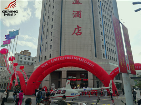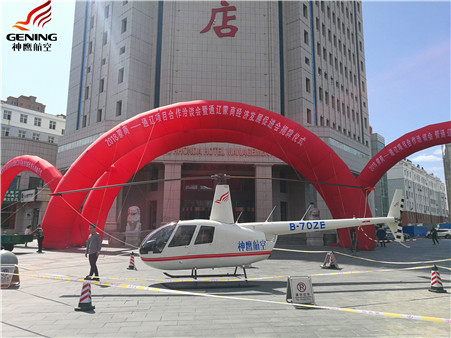 2018年9月6日,2018蒙商-通遼項(xiàng)目合作洽談會(huì)暨通遼蒙商經(jīng)濟(jì)發(fā)展促進(jìn)會(huì)揭牌儀式在內(nèi)蒙古通遼市榮達(dá)酒店舉行。通遼市神鷹通用航空有限公司作為會(huì)員單位參加了此次活動(dòng)?;顒?dòng)中,展示了公司自主研發(fā)的先鋒一號(hào)無(wú)人機(jī)和新引進(jìn)的美國(guó)羅賓遜R44直升機(jī),受到了與會(huì)領(lǐng)導(dǎo)與嘉賓的一致好評(píng)。