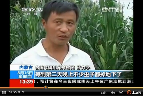 2013年,河南,山西,東北等多地爆發(fā)玉米粘蟲災害,東北玉米粘蟲發(fā)生現(xiàn)狀遼西地區(qū)和通遼地區(qū)二、三齡幼蟲中等發(fā)生,雙遼三、四齡幼蟲偏重發(fā)生,松原地區(qū)二、三齡幼蟲中等發(fā),白城地區(qū)四、五齡幼蟲偏重發(fā)生,綏化地區(qū)四、五齡幼中偏重發(fā)生。